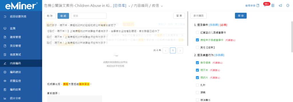 回看 当需要查看或修改已编码的数据,可点击【回看】,下拉列表显示所有已编码数据,点击标题即可查看、修改。 Doc navigation留言 → 这篇文章对您有帮助吗? 是 1 否 3 我们能如何帮助您? 姓名 Email 主题 内容