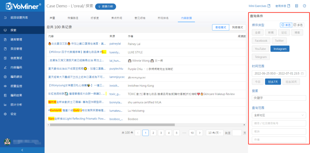 条件查询 查询条件是整个话题通用的查询设置,与【设定】版块中的时间、媒体类型设置无关。 可通过媒体类型、时间范围、搜索、查询范围四个维度查找内容数据。 Doc navigation← 内容数据 这篇文章对您有帮助吗? 是 否 我们能如何帮助您? 姓名 Email 主题 内容