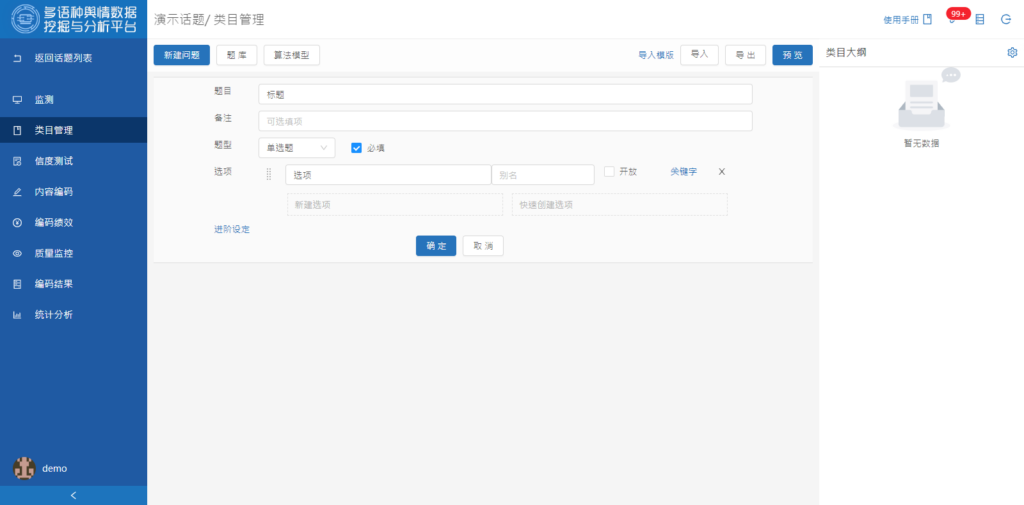 内容分析法主要是对文本数据进行分类编码处理。 编码类目表又叫编码表,相当于问卷调查中的调查表。研究者设计编码类目,由编码员对原始文本材料进行编码或分类。问卷调查示由调查员询问受访者,编码类目表是由编码员询问文本数据,填答问题。在一定程度上,类目建构的质量决定了内容分析的成败和好坏。