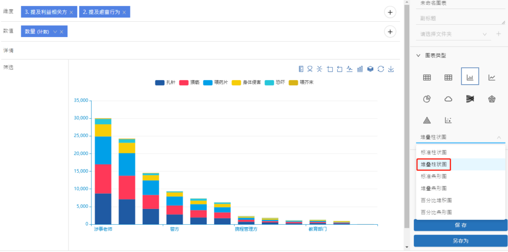 堆叠图 堆叠图是柱状图的扩展,不同的是,柱状图的数据值为并行排列,堆叠图则是一个个迭加起来的。 它可以显示每一个分类的总量,以及该分类包含的每个小分类的大小及占比,因此非常适合处理部分与整体的关系。 Doc navigation← 柱状图标准条形图 → 这篇文章对您有帮助吗? 是 否 我们能如何帮助您? 姓名 Email 主题 内容