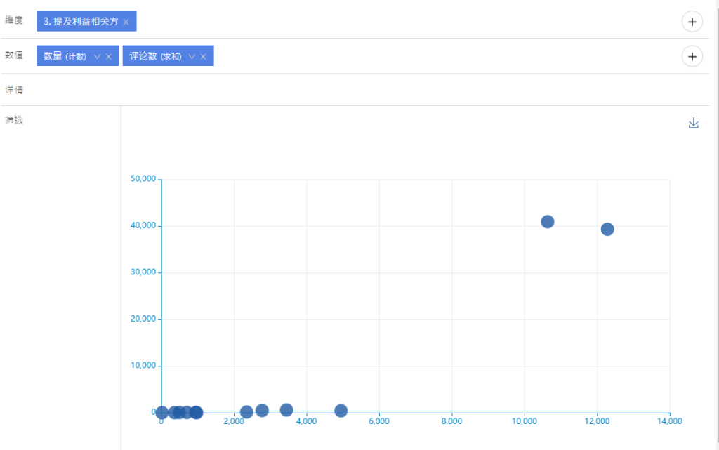 散点图 散点图是指在回归分析中,数据点在直角坐标系平面上的分布图,散点图表示因变量随自变量而变化的大致趋势,据此可以选择合适的函数对数据点进行拟合。 用两组数据构成多个坐标点,考察坐标点的分布,判断两变量之间是否存在某种关联或总结坐标点的分布模式。 散点图将序列显示为一组点。 值由点在图表中的位置表示。 如下图所示: Doc navigation← 雷达图热力图 → 这篇文章对您有帮助吗? 是 否 我们能如何帮助您? 姓名 Email 主题 内容
