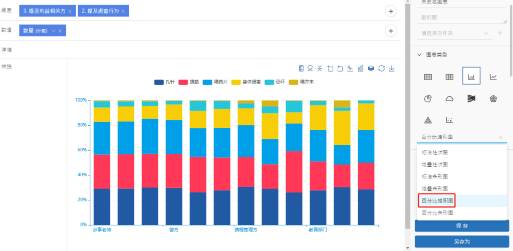 百分比堆积图 堆叠图的另一种形式。普通堆叠是按照数值大小依次堆叠,百分堆积图是按照数值所占百分比进行堆叠。 Doc navigation← 柱状图标准条形图 → 这篇文章对您有帮助吗? 是 否 我们能如何帮助您? 姓名 Email 主题 内容