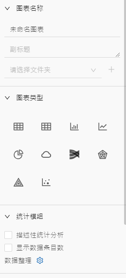 编辑图表界面右侧的“功能设置区”,由“图表名称”、“图表类型” “统计模组”、 及“图表样式“等图表通用功能组成。在完成图表命名及选择好图表类型设置后,点击最下方的“保存”或“另存为”按钮,保存自定义图表的设置。