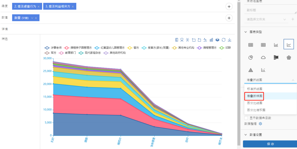 堆叠折线图 堆叠折线图是折线图的一种,但线下面的区域会由颜色或纹理填满。 要绘制堆叠折线图,首先在笛卡儿双轴座标上标记各个数据点,再用线把它们连起来,最后把线下方的空间填满。 跟折线图一样,堆叠折线图可显示某时间段内量化数值的变化和发展,常用来显示趋势,而非表示具体数值。 Doc navigation← 折线图百分比线图 → 这篇文章对您有帮助吗? 是 否 我们能如何帮助您? 姓名 Email 主题 内容