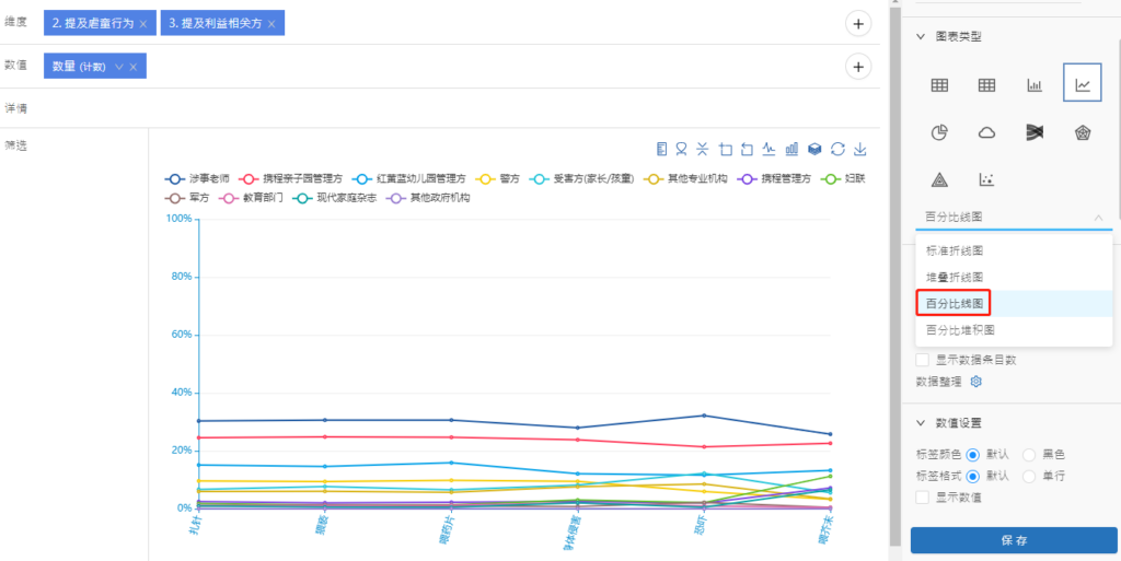 百分比线图 百分比线图是一种特殊的面积图,可以用来比较在一个区间内的多个变量。百分比线图和堆叠折线图的区别在于,百分比线图每个数据系列的起点都是基于前一个数据系列绘制的,也就是每度量一行就要填满行与行之间的区域。 Doc navigation← 堆叠折线图百分比堆积图 → 这篇文章对您有帮助吗? 是 否 我们能如何帮助您? 姓名 Email 主题 内容