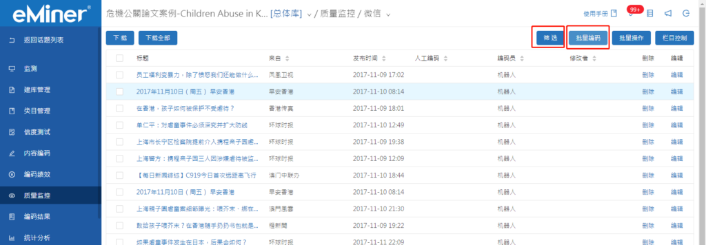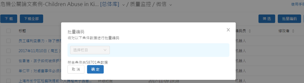 点击右上角的“批量编码”,设置修改的变量及修改后结果,在条件右侧的打钩,表示修改为填充该结果。允许同时修改为多项结果,使用条件后加减号增删条件。