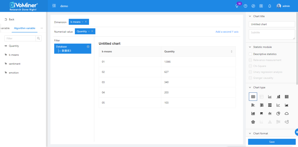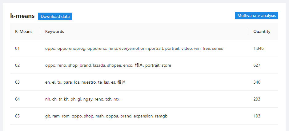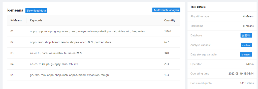 - 3. Multivariate Analysis: click “Multivariate analysis” to cross-analyze the algorithm results of K-Means with other variables.