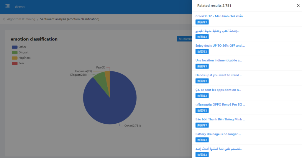 - 3. Multivariate Analysis: click “Multivariate Analysis” to cross-analyze the algorithm results of sentiment analysis with other variables.