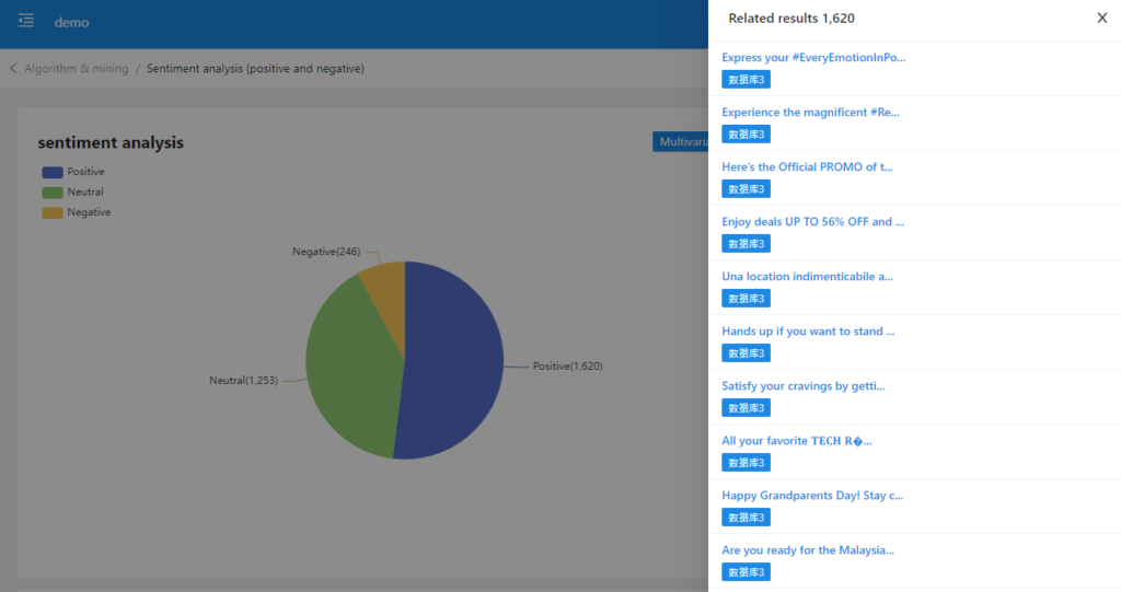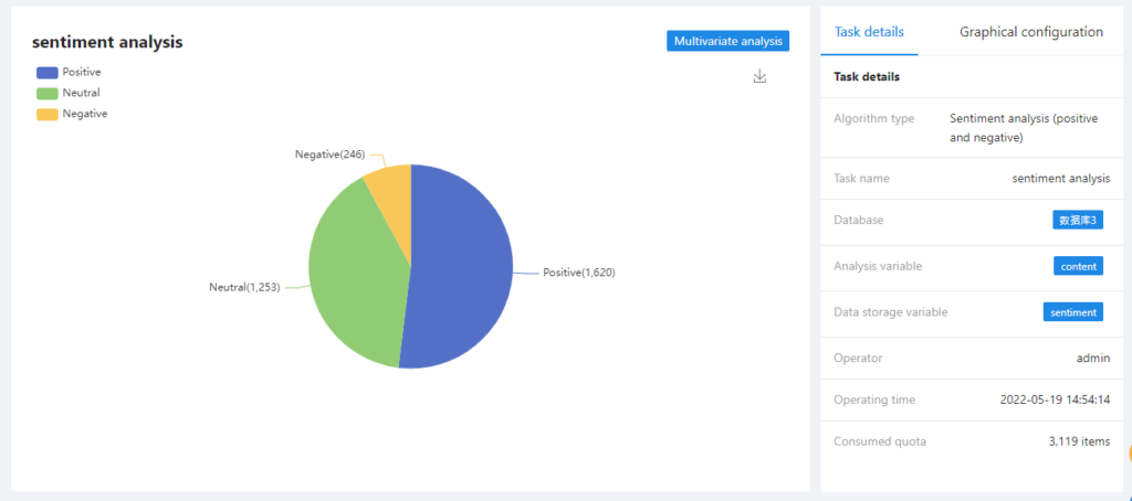 • 3. Multivariate Analysis: click “Multivariate analysis” to cross-analyze the algorithm results of sentiment analysis with other variables.