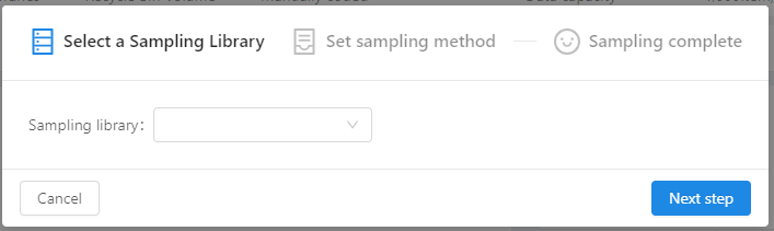 If the data capacity is too large, you can build a Sampling Pool, with certain proportions of the whole samples. On the Overview page, click [Sampling] in the database window, and a pop-up box will display the sampling steps, which is in the order of [Select Sampling Pool] → [Confirm Sampling Method]→[Complete Sampling].