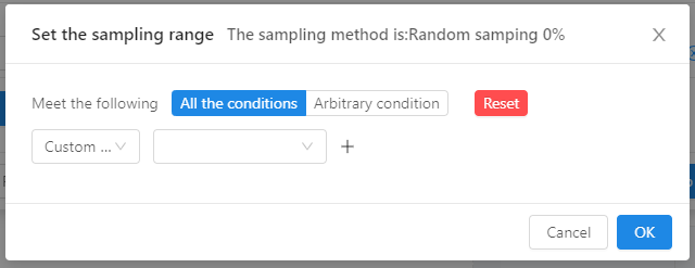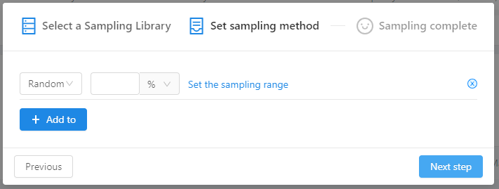 Step 2: Confirm sampling method. To set up the sampling method, first you need to select the sorting order, which includes random, ascending, and descending; then confirm the needed amount of the data, which can be a certain percentage or certain number of data items; finally, set up the sampling range to meet certain criteria, which can be “all” criteria, or “any” of the criteria