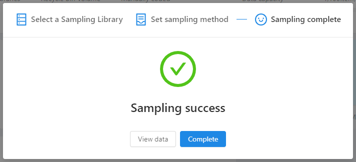 Step 3: Complete sampling. After all the options are selected and confirmed, click “Next”, a pop-up box will display the sampling progress. When the sampling is finally completed, you can click [View Data] to check the content of the newly created Sampling Pool.