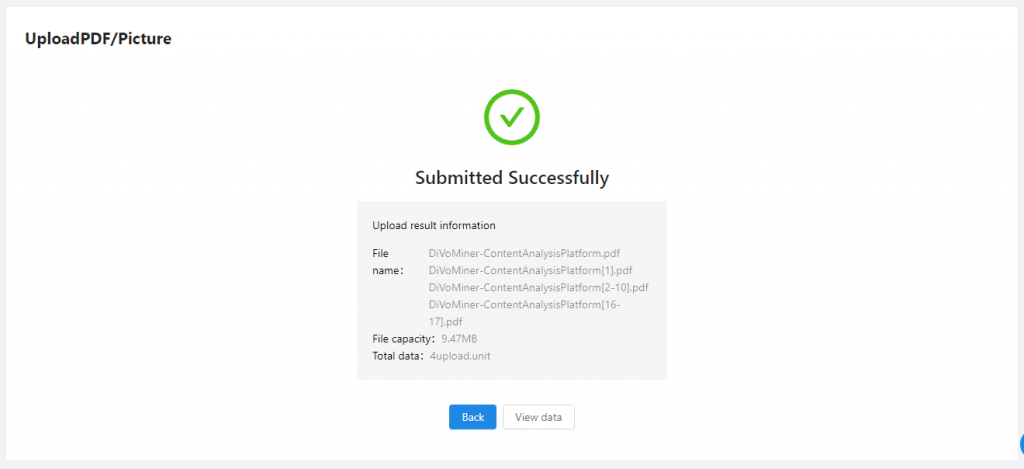 • 3. Submit data: Click “Submit Data” to submit PDF/pictures to the platform.