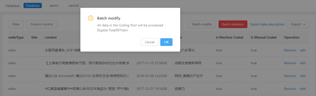 After the data filtering, click “Batch Operation” on the upper right corner to confirm the data and number of data that will be modified in batches.