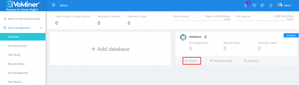 8. After setting the keywords, go to the Overview page and click [Machine Coding] of the corresponding database to execute the machine coding of the data in the database.